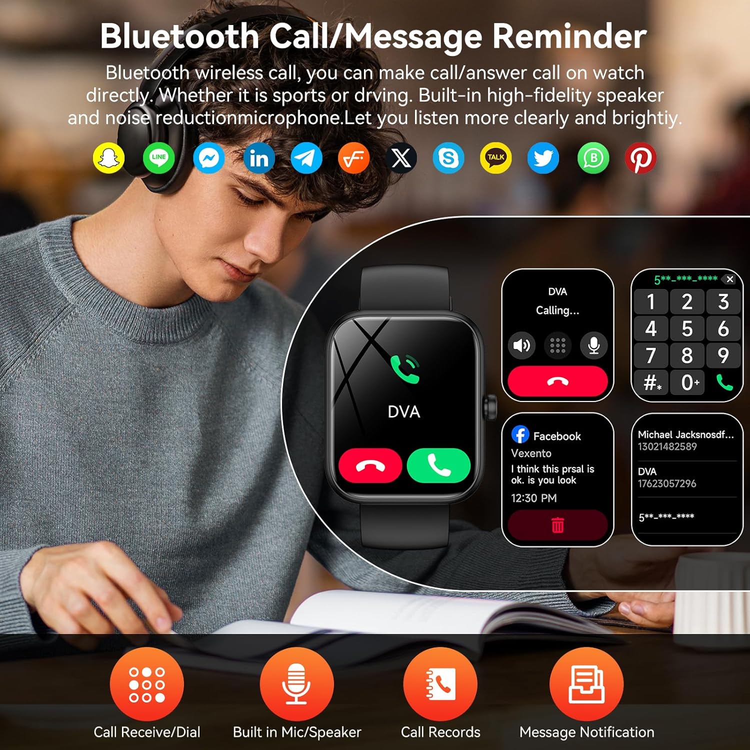 - Bluetooth Call & Messaging Notification: Experience seamless Bluetooth 5.3 calling with HD speaker/mic on this smartwatch, receiving WhatsApp/Telegram/Facebook notifications on its 1.83″ touchscreen. The auto-wake feature activates when lifting your wrist, reducing phone reliance (Note: Message replies not supported)